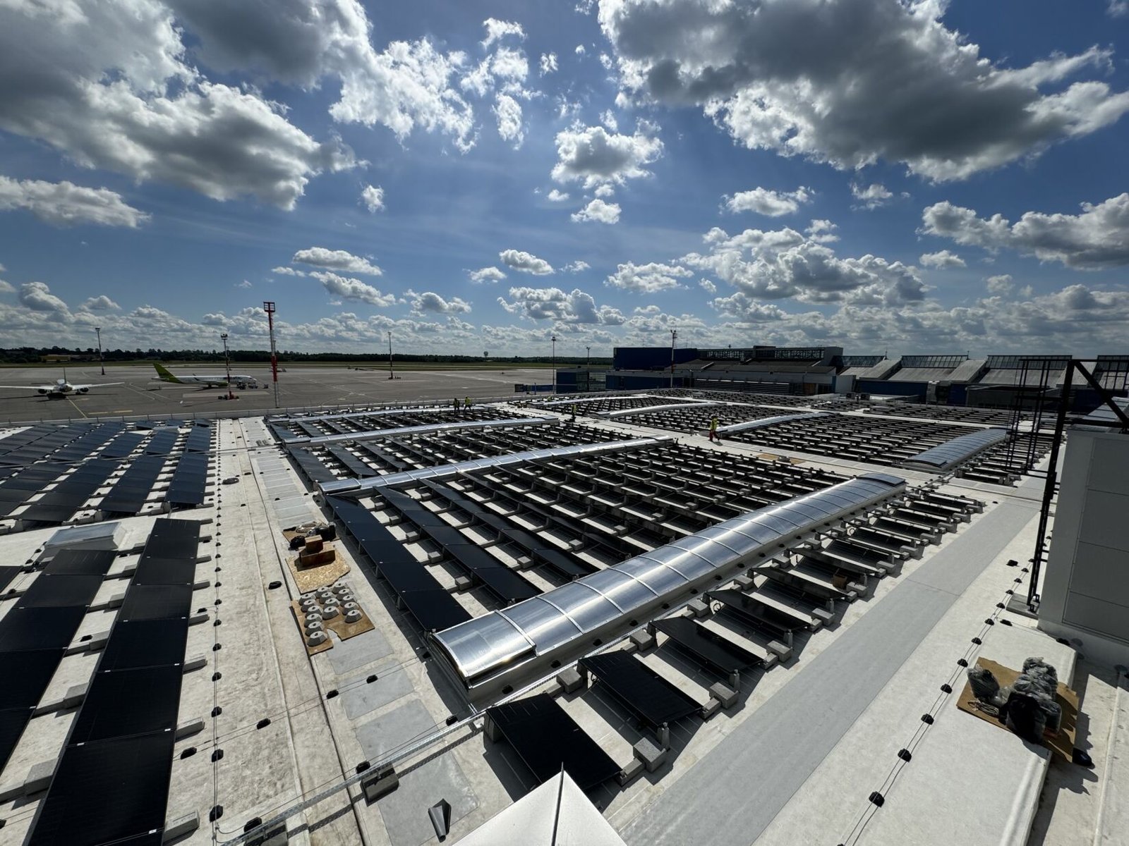 Ant naujojo Vilniaus oro uosto išvykimo terminalo stogo – saulės energijos moduliai