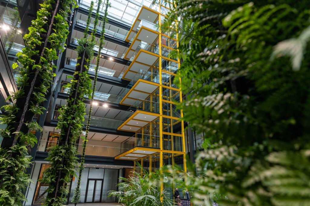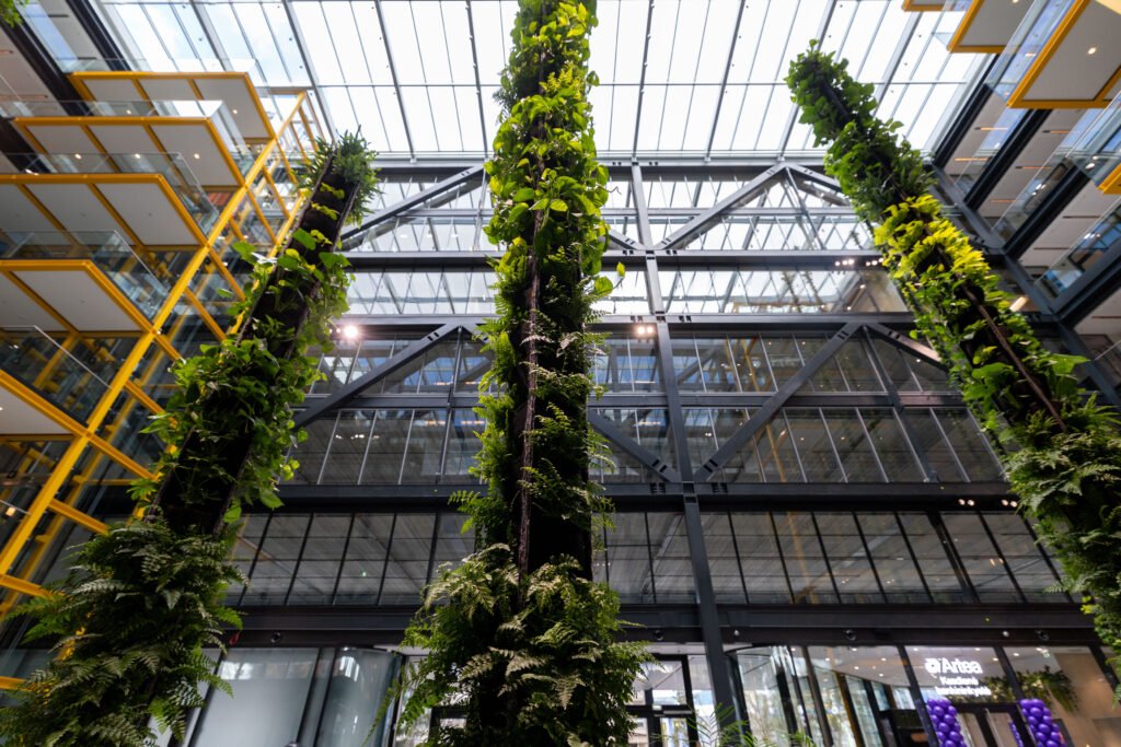 Atsižvelgiant į darbuotojų gerovę, įgyvendinti ir žaliosios architektūros sprendimai: per 7 aukštus atrijuje driekiasi 35 m tikrų vijoklių instaliacija. Gyvi augalai padeda gerinti oro cirkuliaciją, didina deguonies kiekį ir kuria palankesnes darbo sąlygas.