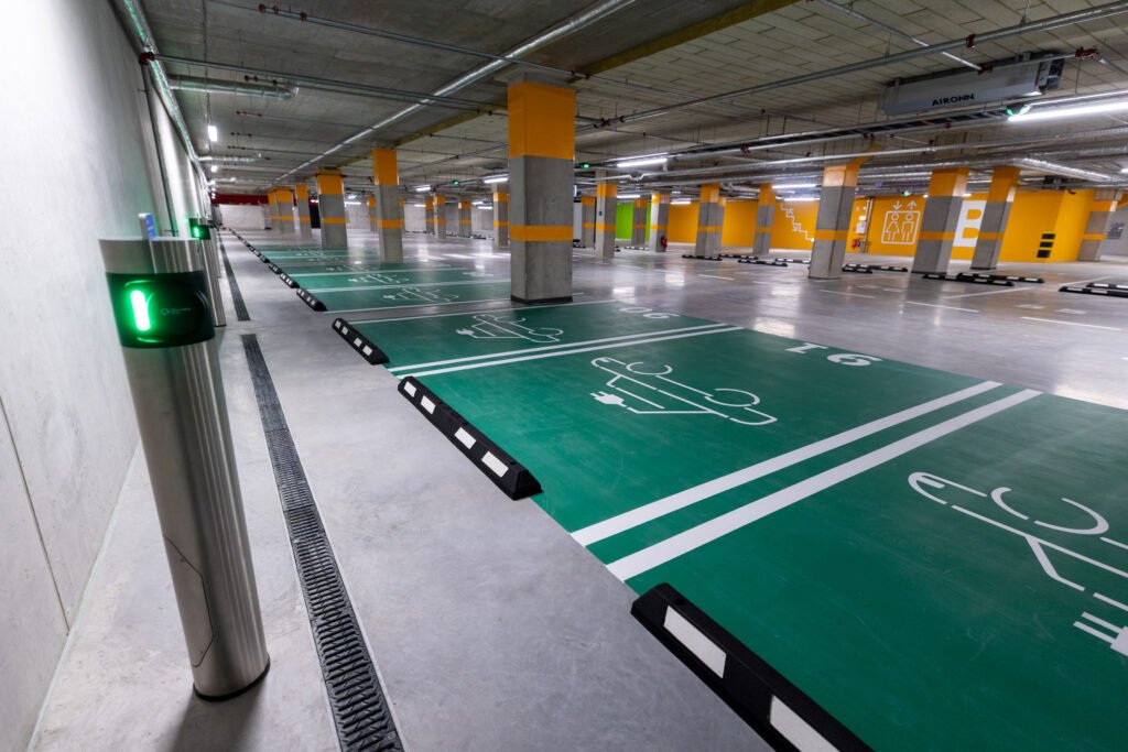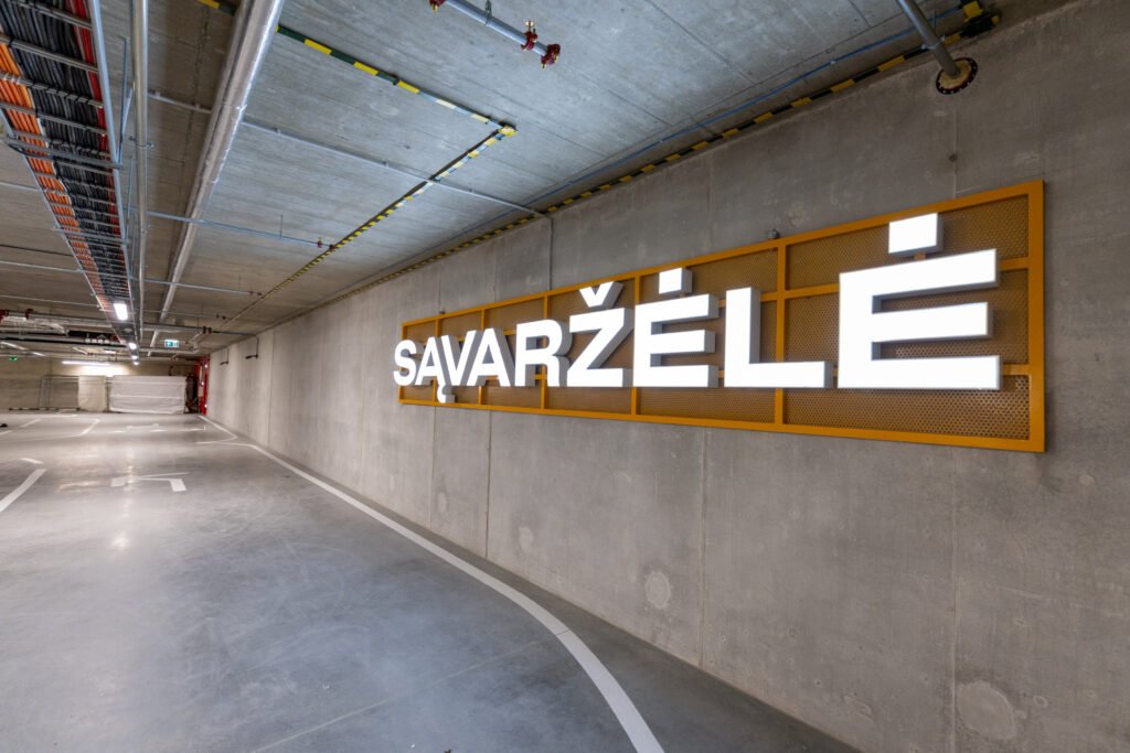 Naujame verslo centre įrengti du požeminiai aukštai, kuriuose suplanuotos 346 automobilių stovėjimo vietos, iš jų 70 – elektromobiliams. Taip pat numatytos vietos dviračiams ir paspirtukams bei įkrovimo stotelės elektra varomoms transporto priemonėms. Pastato -1 aukšte įrengtos dušinės ir persirengimo patalpos, suteikiančios galimybę patogiai atvykti į darbą aktyviais būdais. Pirmajame pastato aukšte įrengta konferencijų salė, talpinanti 130 žmonių.