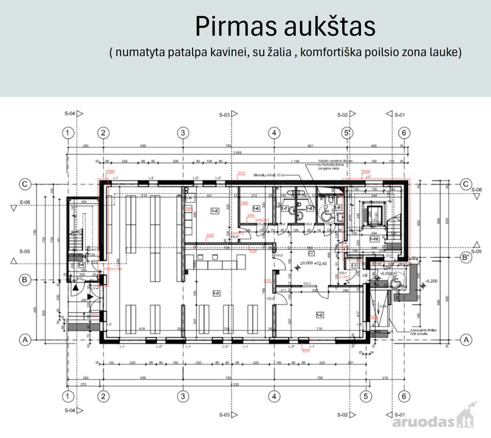 Kaip rašoma skelbime, patalpos tinkamos administracinei, prekybos, paslaugų ar maitinimo veikloms. Patalpose veikia Orona Next e10 liftas, lauke įrengta poilsio zona.