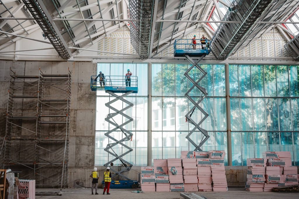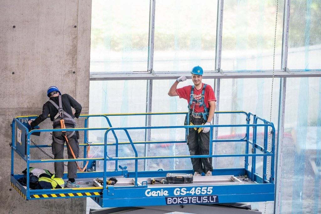Darbuotojai pluša tiek viduje, tiek išorėje.