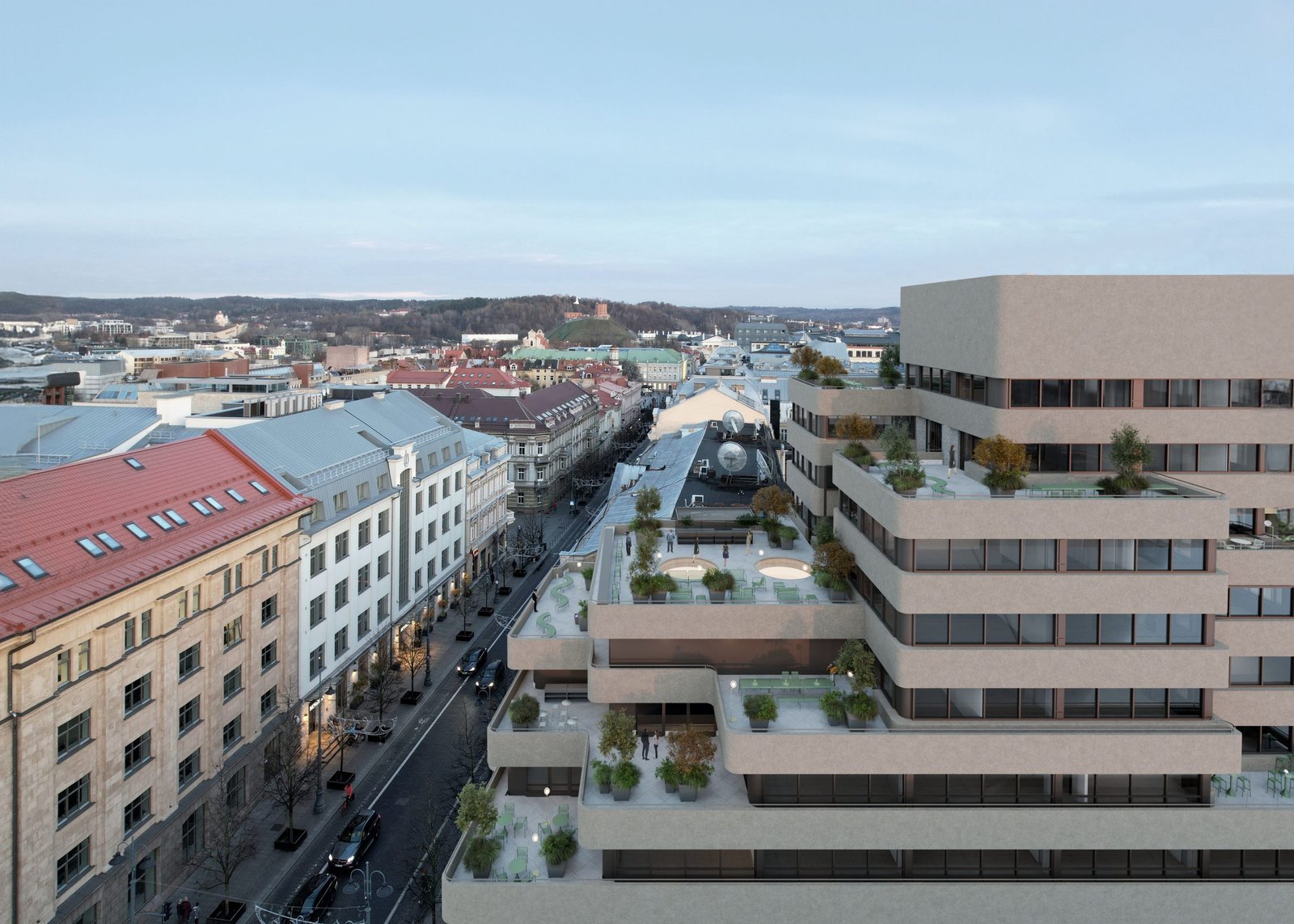 Pasak jo, siekiama, kad pastatas būtų gyvas ne tik viduje, kur projektuojamos biurų erdvės, bet ir lauke – biurams bei pastato bendruomenei skiramos, suremontuojamos ir atveriamos terasos, numatomas želdinimas vazonuose, lauko baldai.