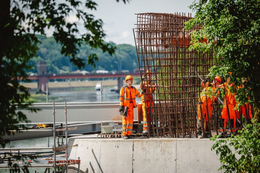 Kitame etape vyks perdangos ir atraminės sienos montavimas, apsauginių rezervinių vamzdžių įrengimas ir tilto pereinamųjų plokščių betonavimas.