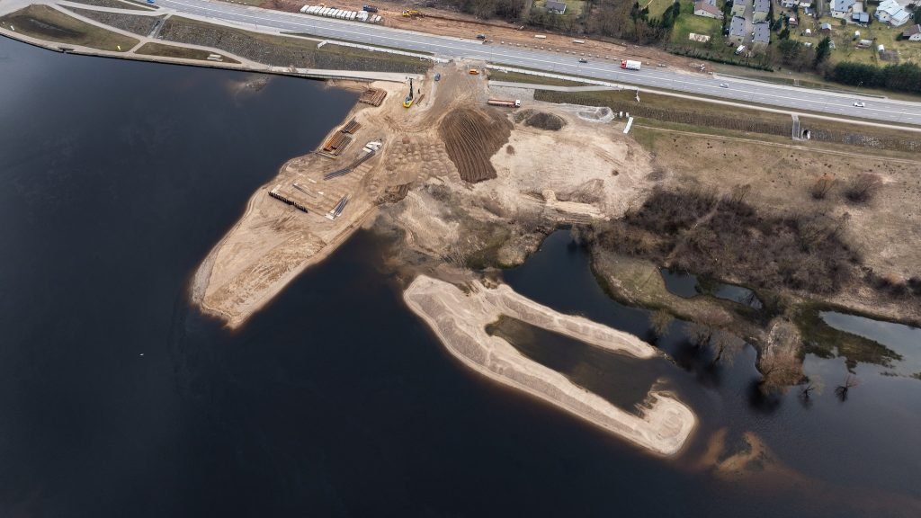 Lygiagrečiai pradėti tilto atramų įrengimo darbai, atramų pamatų vietose rengiami bandomieji poliai.