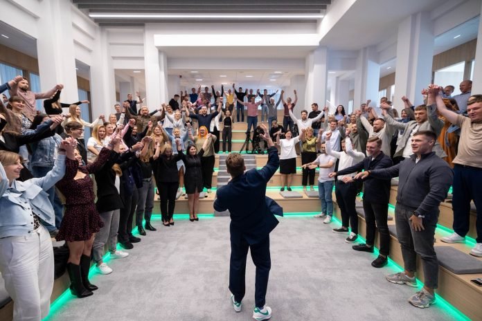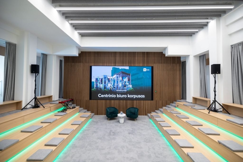 Daugiau kaip pusmetį trukusios pastato dalies vidaus rekonstrukcijos metu buvo perplanuotas išplanavimas ir suformuota nauja darbuotojams skirta erdvė – teatras su įspūdingo dydžio – 4,8 metro pločio ir 2,7 metro aukščio – „Samsung“ ekranu.