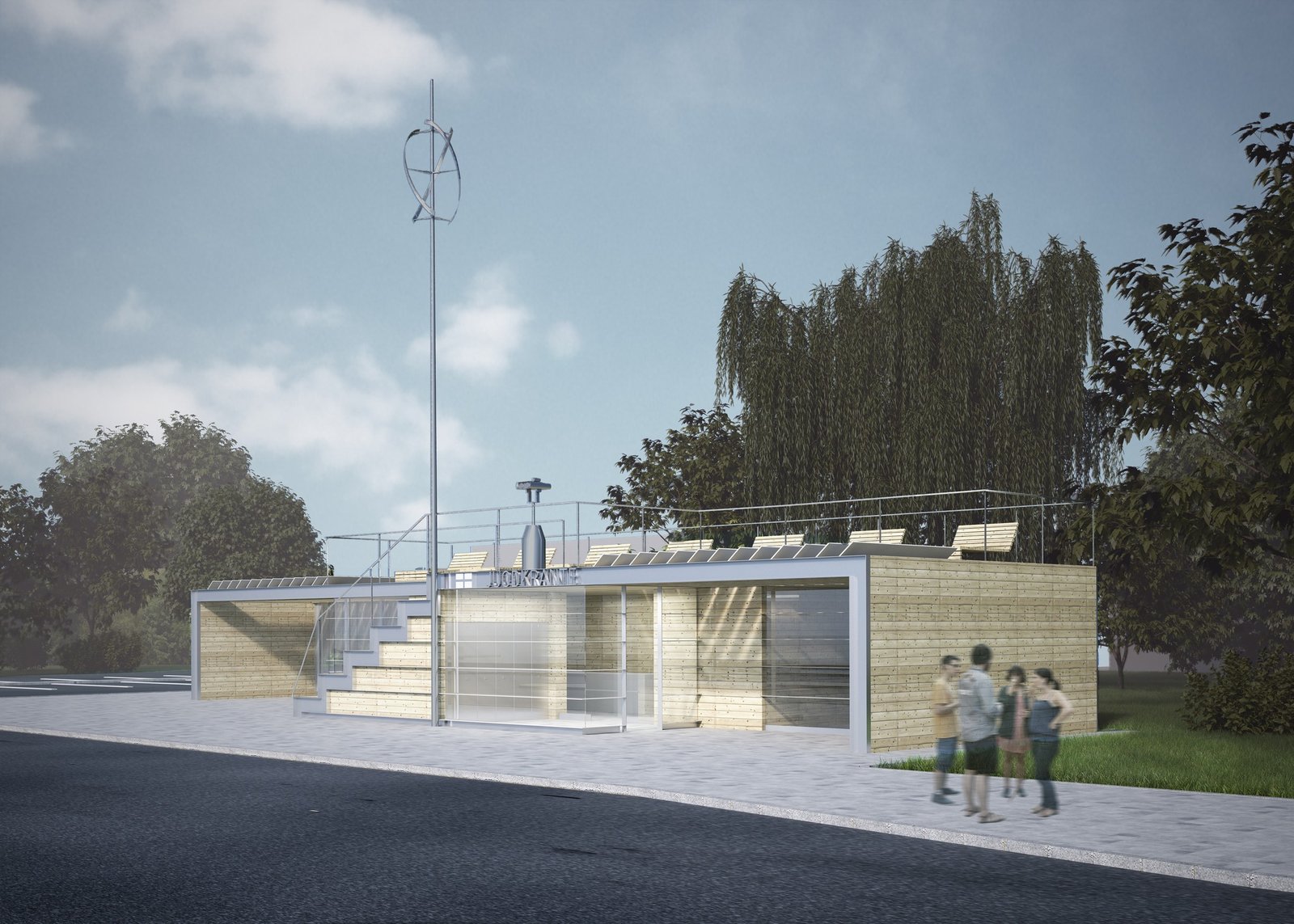 Kaip pristato projekto autoriai, šiuo nedideliu jaukiu objektu siekiama susilieti su aplinka ir gamta, todėl parinktas vėjo nugairinto, tinkančio pajūriui, kompaktiško mastelio įvaizdis su išsiskiriančiu vertikaliu akcentu – ant stiebo iškelta vėtrunge su Juodkrantės ženklu.