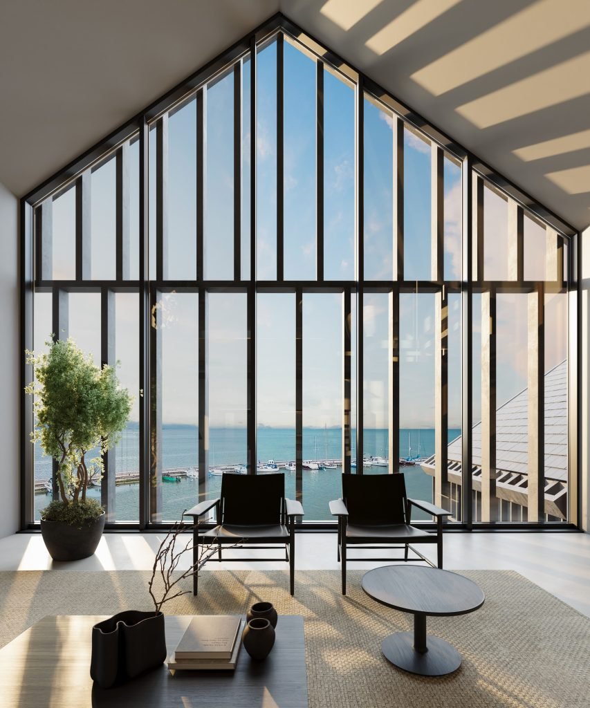 Viešbutyje numatyta apie 50 kambarių ir apartamentų, pritaikytų tiek trumpalaikiam, tiek ilgalaikiam poilsiui. Apartamentai, kurių plotas sieks nuo 40 iki 150 kv. m, bus dviejų aukštų su panoraminiais marių vaizdais. Kai kuriuose jų bus įrengtos lauko terasos, o išskirtinį erdvės pojūtį suteiks iki 6 metrų aukštį siekiančios lubos.