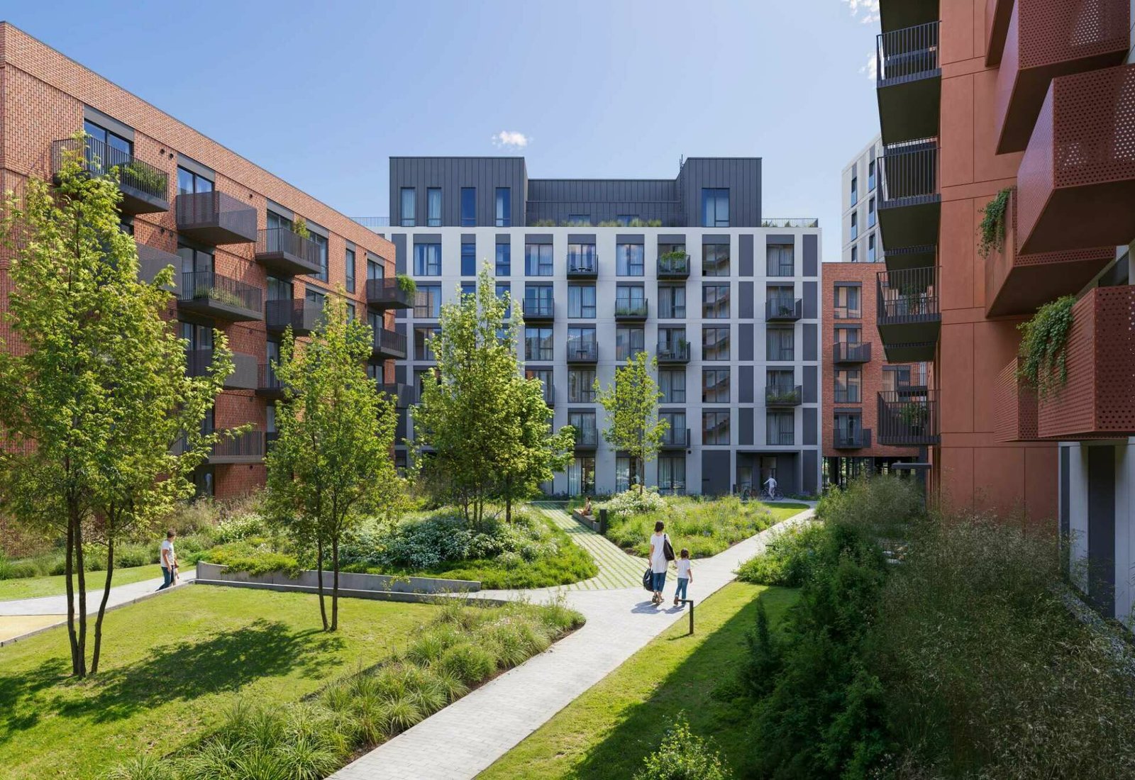 Sklypo vidinėje teritorijoje projektuojamos trys atskiros vaikų žaidimų aikštelės ir 140 vietų dviračių parkavimui. Visoje teritorijoje bus pasodinta įvairių medžių, daugiamečių augalų bei krūmų, bus įrengti apželdinti pastatų stogai.